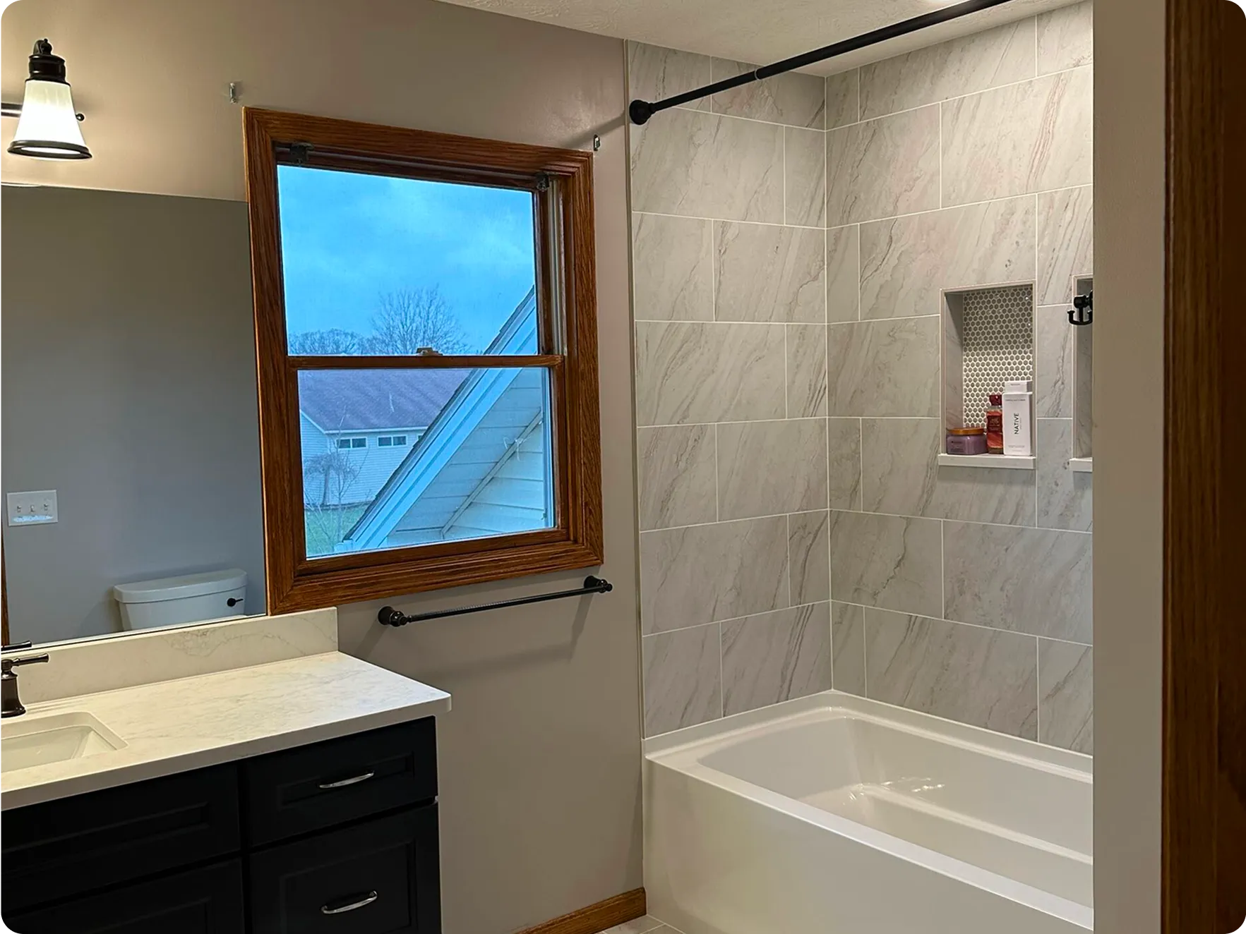 “Medina Exteriors and their interior remodeling division of Simply Distinct Kitchens and Baths were outstanding to work with! Their entire team was extremely knowledgeable and professional. They did such a great job on our upstairs bathrooms that we went back to them to remodel our kitchen, living room, and downstairs bathroom. They know what they are doing and exhibited that through the first-class quality of their work. Their communication was top-notch! Their online app made it very easy to see the schedule, get updates, and get questions answered quickly. We highly recommend them!”
