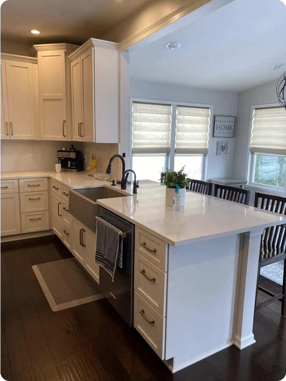 “Simply Distinct (Medina Exteriors Kitchen division) just finished a total remodel of my kitchen (and floors in living room and dining room) and I couldn’t be happier!!! They were a great company to work with; professional and very responsive to all of my needs and questions. Quickly answered questions when they arose and helped me understand the process. Allowed me to save a little money by doing the painting, the fireplace and some insulation to save costs which helped when unexpected costs arose (electrical – expected). They may not be the cheapest initial quote, but all of the costs are presented up front and the quality of their work is excellent. I would definitely hire them again!!”